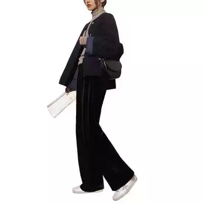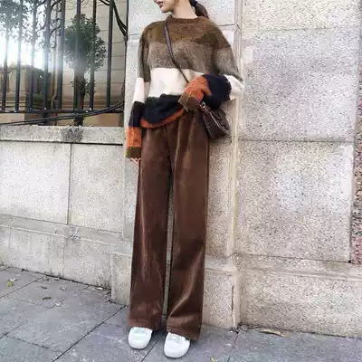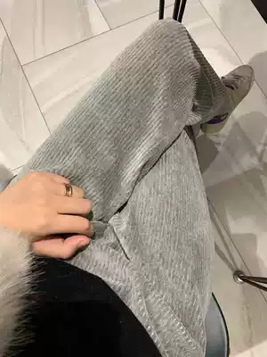 Pregnant women corduroy wide leg pants autumn and winter belly loose black strippery straight slim casual plus velvet padded trousers