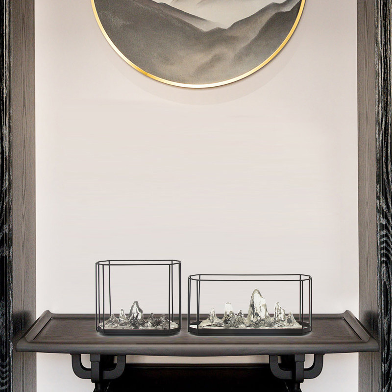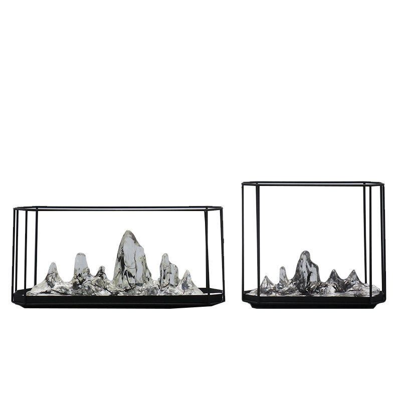 Modern new Chinese style creative iron transparent resin rockery decoration furniture living room feng shui porch handicraft decoration