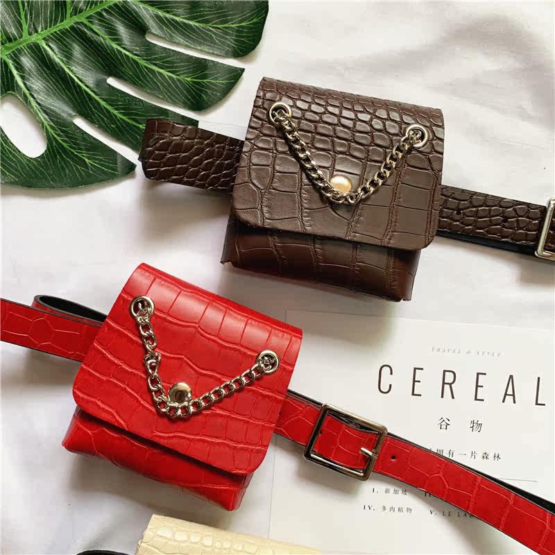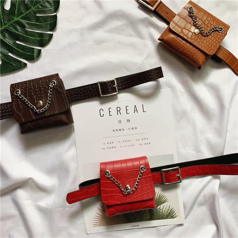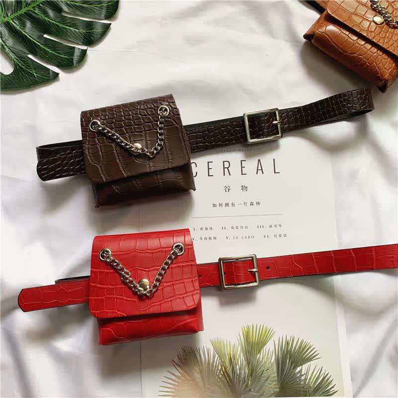 New Korean style waist bag female punk style chain mini PU belt Joker fashion crocodile belt waist bag