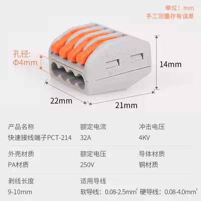 Quick terminal block household parallelizer electrical connector wire extension cord 4-hole wiring row one in and three out