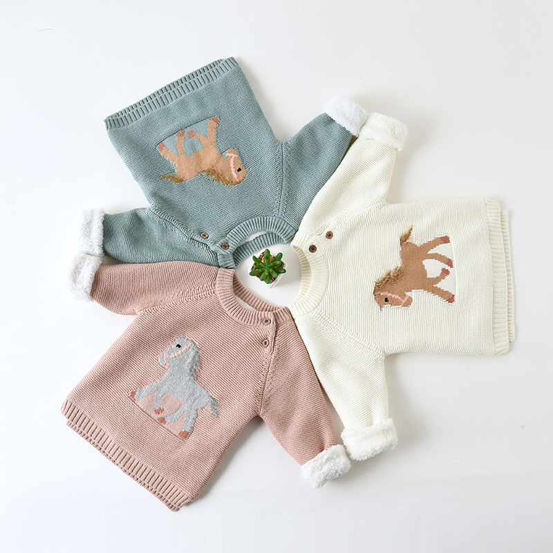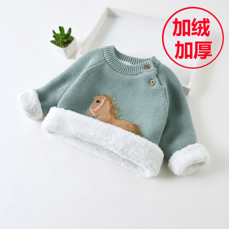 Baby sweater plus velvet thickened autumn and winter clothes cartoon foreign style 3 sets of heads 126 years old boys and girls children children babies