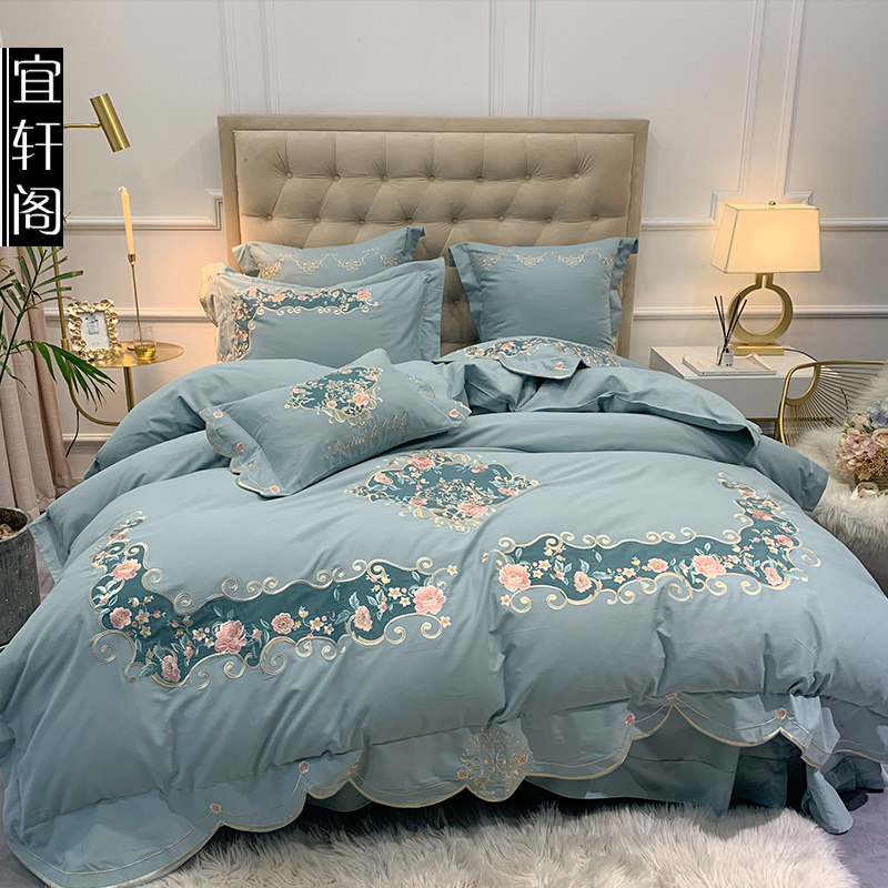 All cotton embroidery 80 Egyptian cotton - fried luxury four - piece set of pure cotton - American pastoral long - dune cotton bedding