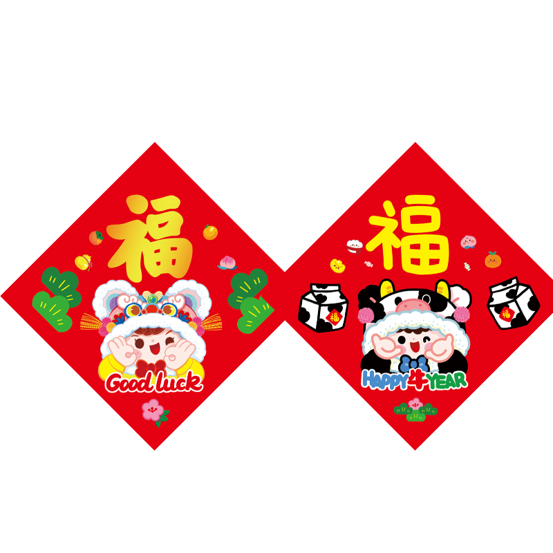 Yu original 2021 Year of the Ox mini cute cartoon Xiaofu word creative personality hard bronzing Spring Festival New Year Decoration