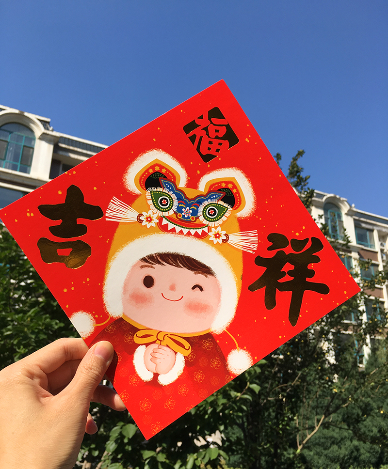 Blessing word-Universal Blessing Word-Year of the Rat cardboard Hot stamping size mini without glue