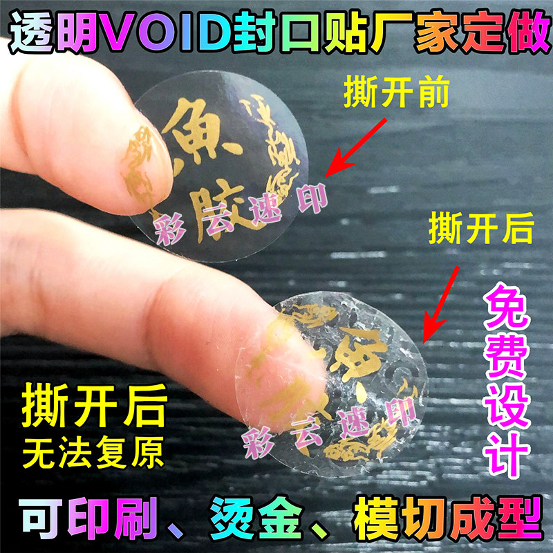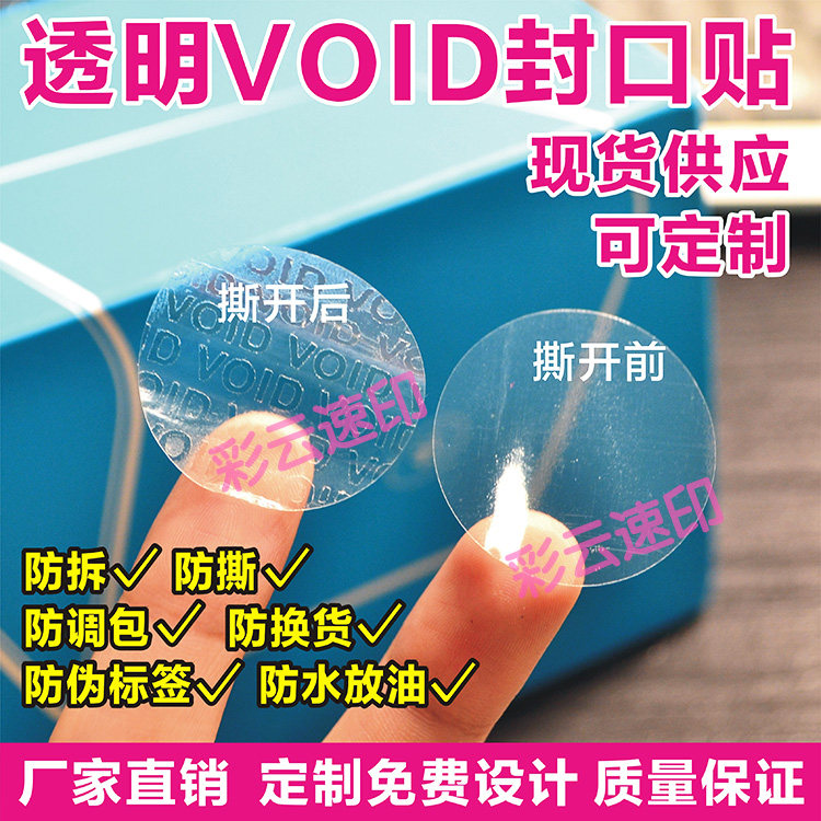 Transparent anti-tear closure sticker round adhesive packaging box void anti-counterfeiting anti-tear label custom disposable seal