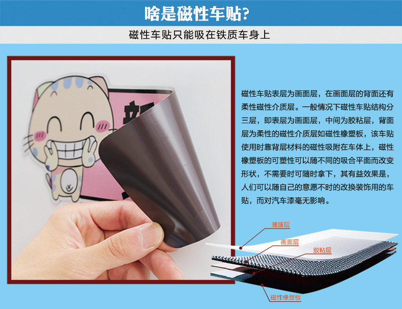 Cartoon novice on the road magnetic car stickers female driver car reflective stickers creative unified tremolo internship logo