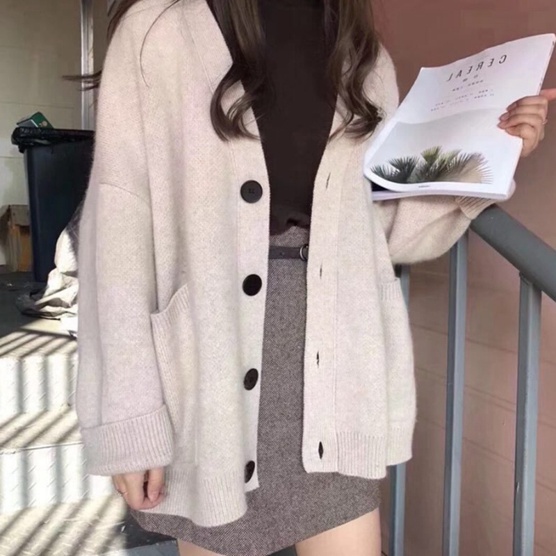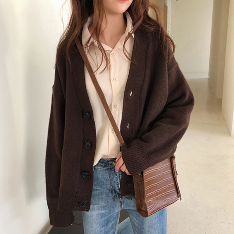 2021 new early autumn knitted cardigan coat women Joker loose lazy wind wear student v-neck sweater women
