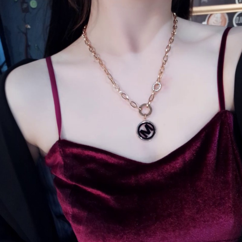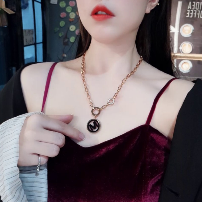 South Korea's Dongdaemun Net Red Simple Titanium Steel Thick Chain M Letter Pendant Fashion Personality Temperament Short Versatile Necklace