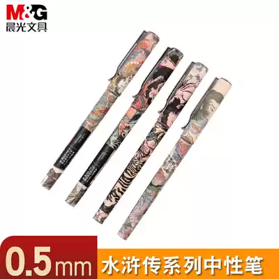 Morning light straight liquid water-based ballpoint pen 0 5 needle tube students with gel pen British Museum joint name ancient style pen water Marsh hero retro gift box quick dry Test straight pen ARP57507 black pen