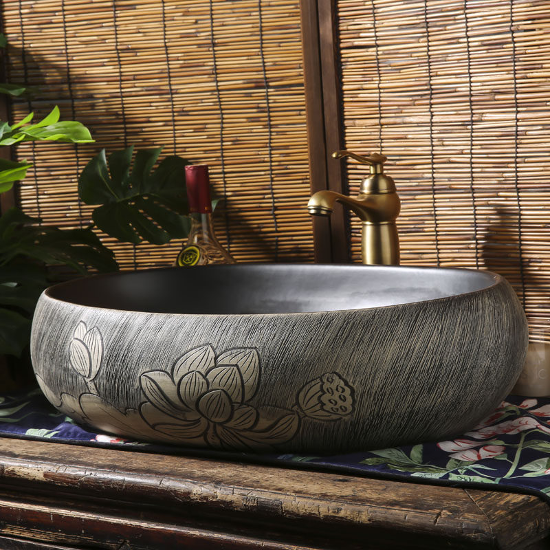 Black Large Oval Table Basin Eu Style Retro Ceramic Wash Basin Mid Type Creative Washbasin washbasin Wash Basin