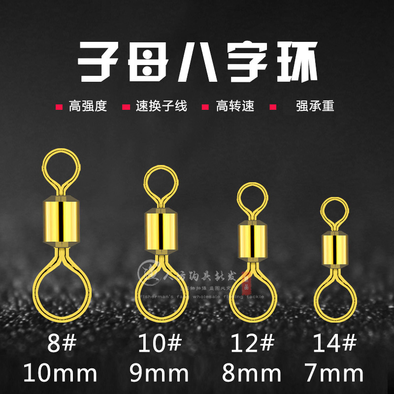 Raft fishing eight-word ring primary-secondary ring 8-word ring high-speed American swivel connector raft fishing sub-wire clamp down fishing accessories