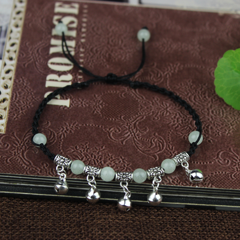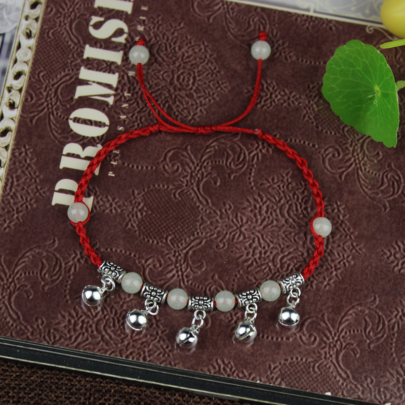 Japan-ROK red rope handwoven luminous football-style female luminous night pearl palace imperial foot chain bell ancient wind safety lock stone