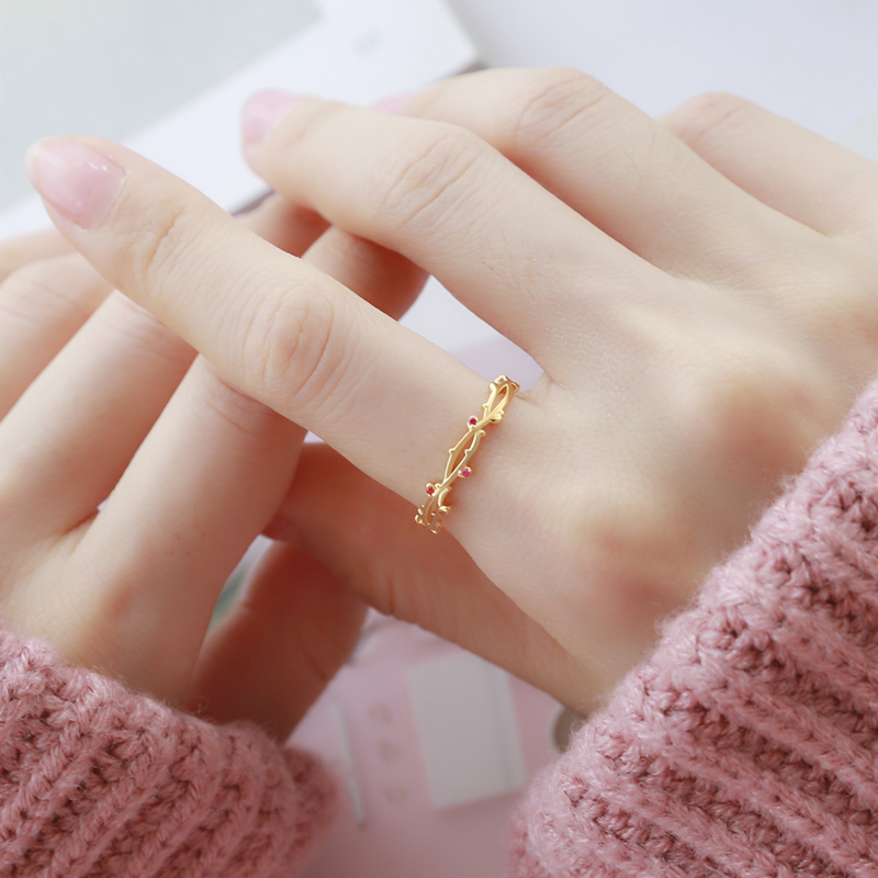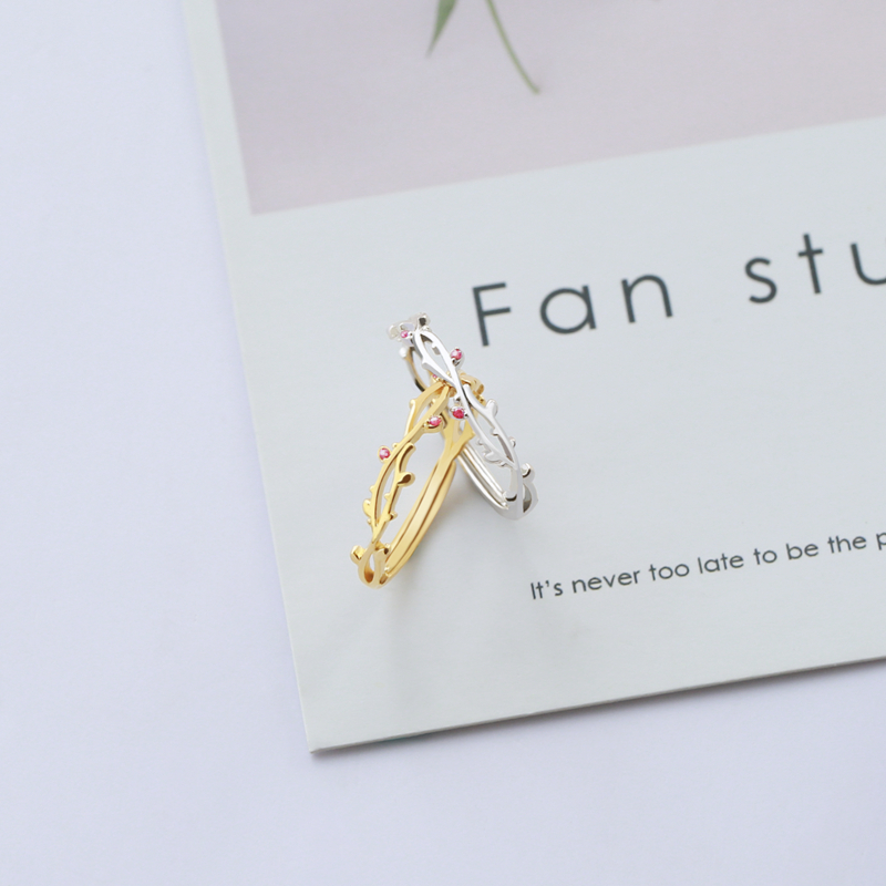925 sterling silver thorn flower ring female fashion personality Korean version of ins tide net red niche design index finger ring adjustable