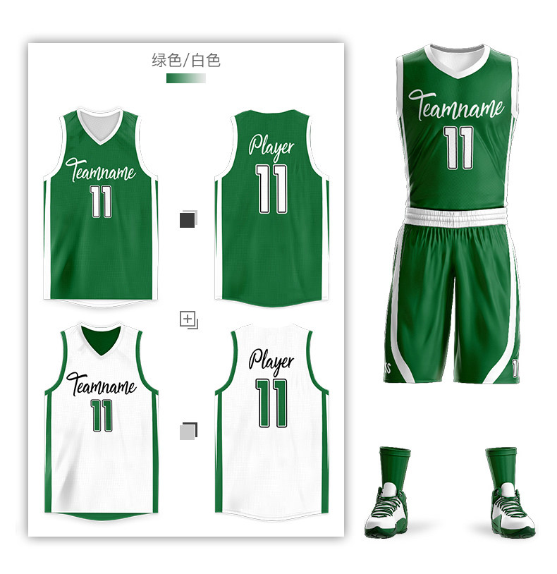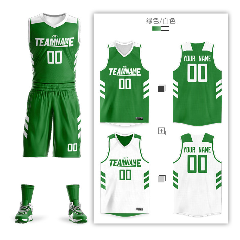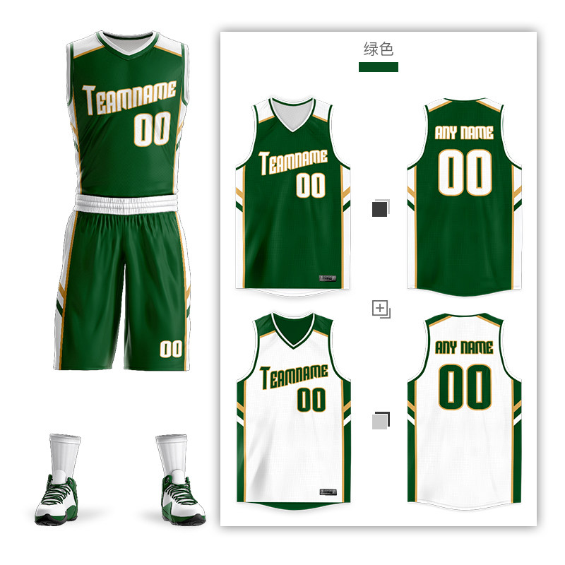 Double-sided basketball suit custom man green white hip hop trend shirt vest basketball game team clothing water print