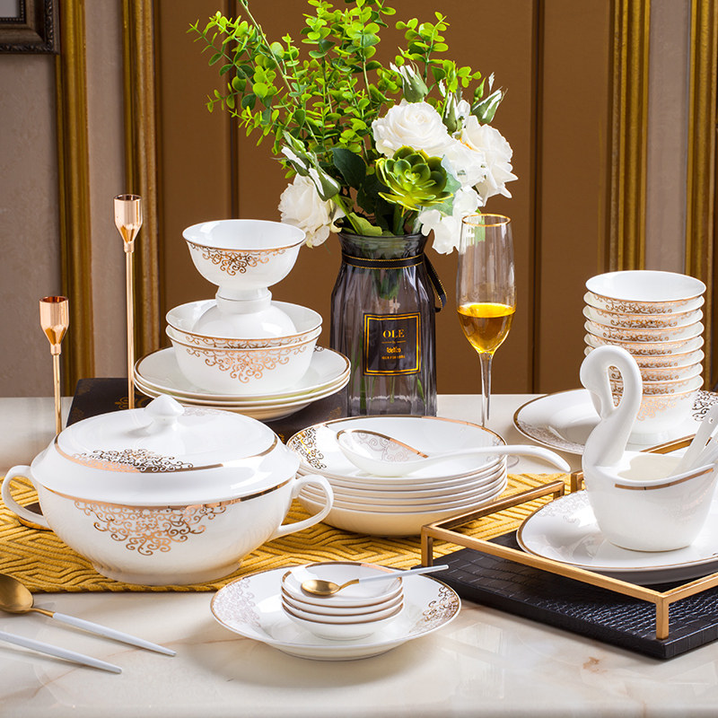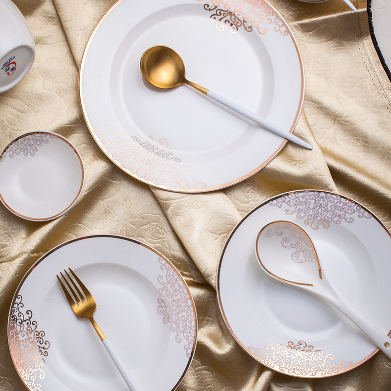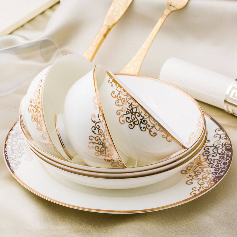 Dish set home European simple gold side set bowl plate Jingdezhen ceramic bone porcelain tableware combination