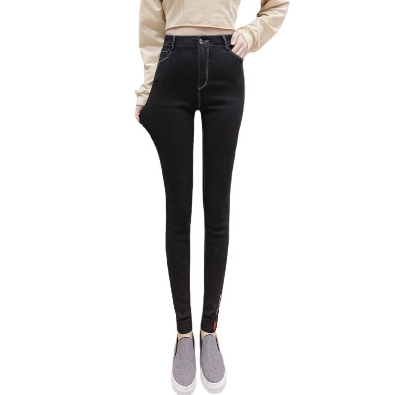 The plush elastic jeans wear 2022 new autumn and winter high waist and lean leg pencil pants