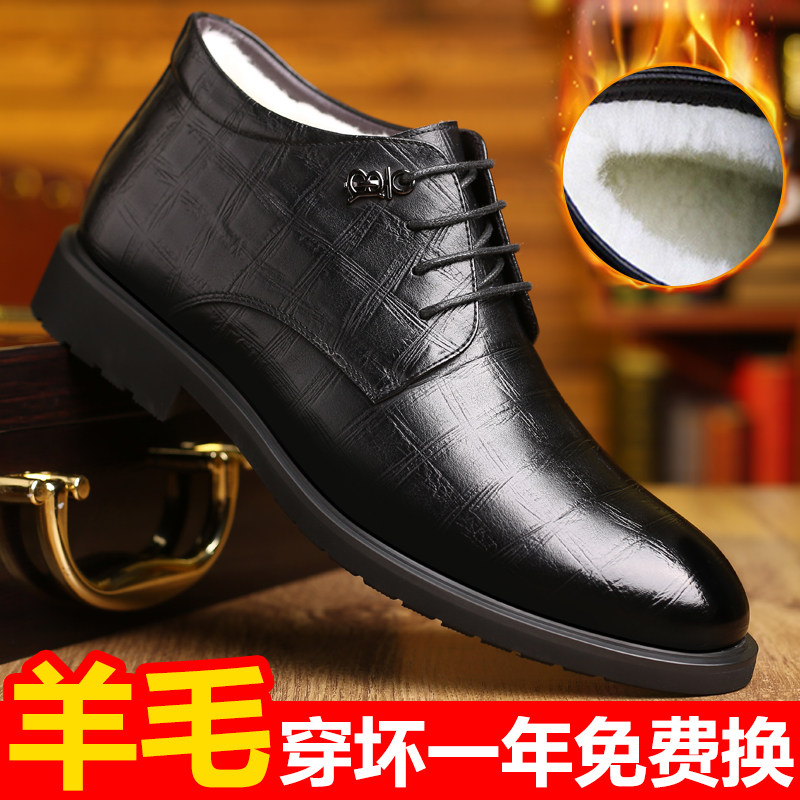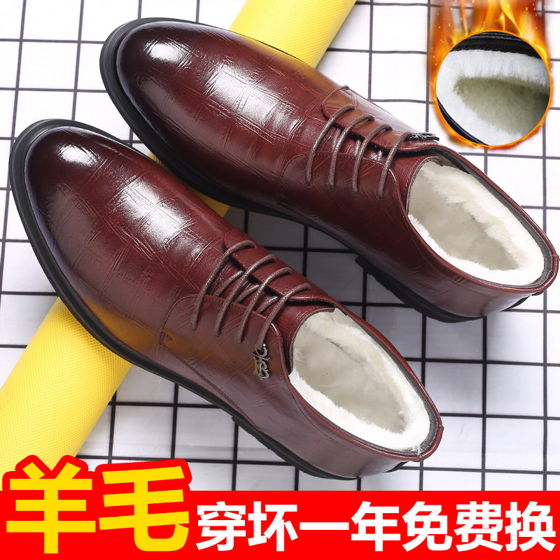 Men's cotton shoes winter plus velvet warm fur all-in-one snow boots thick Martin boots business leather high tube leather shoes