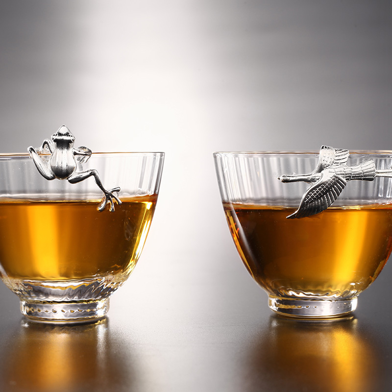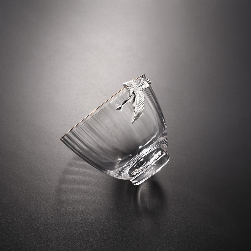 Crystal master cup inlaid silver glass tea cup heat-resistant personal cup kung fu tea set Japanese cup small tea bowl drinking tea cup