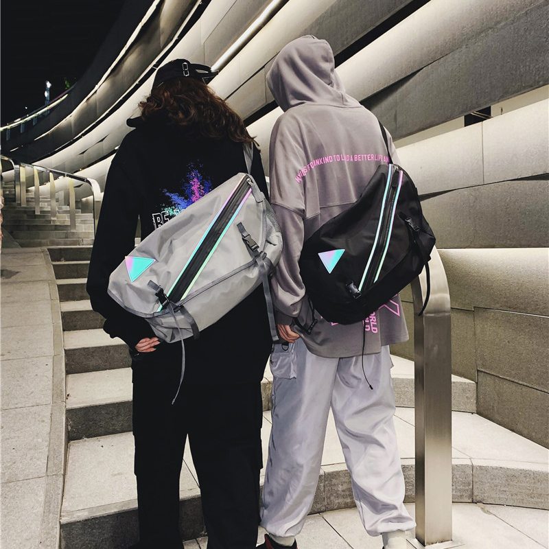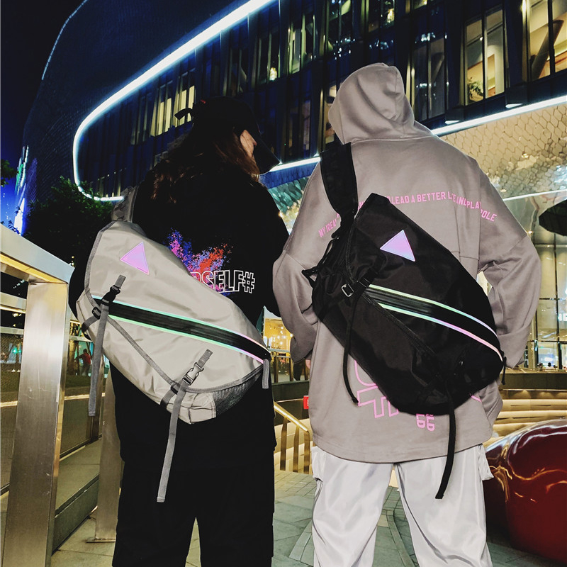 Men's single shoulder diagramidal satchel with large adjective hip-hop satchel satchel women Chains with wind and leisure sports riding shoulder bag