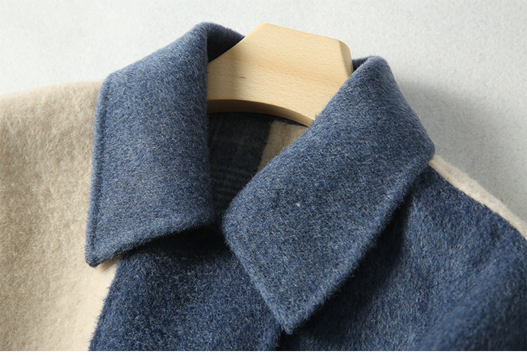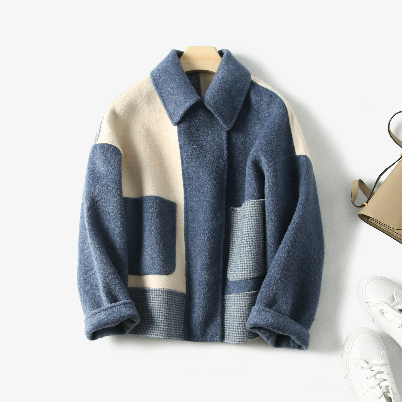 Autumn and winter small Hepburn style high-end short loose thin plaid wool coat double-sided cashmere coat women