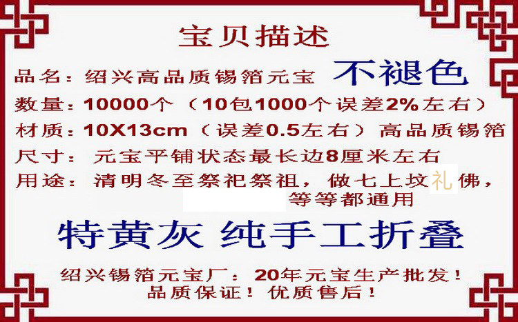 Sacrificial items Burnt Paper paper money tin foil paper Yuanbao gold and silver 10000 only Qingming Festival Yuanbao handmade discount-Taobao