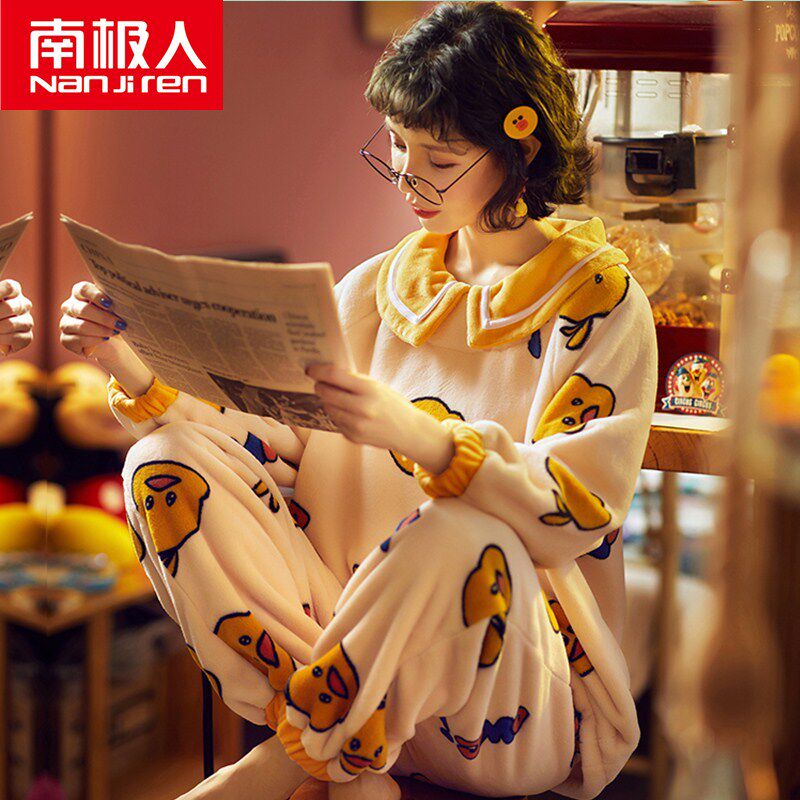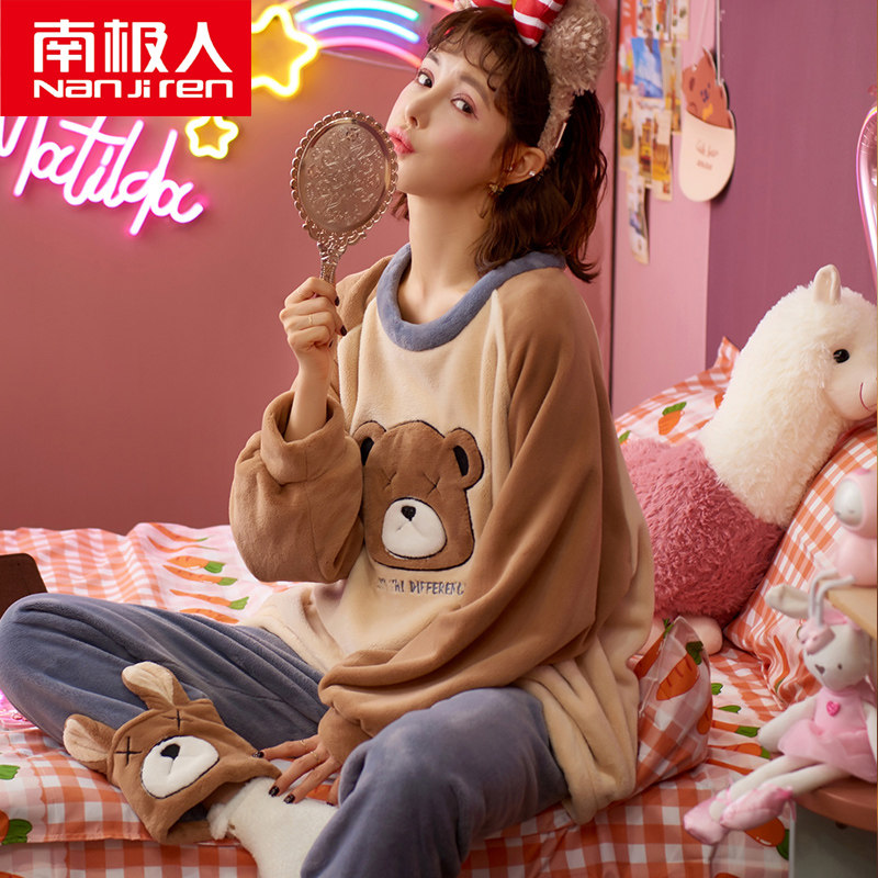 South Pole Coral Suede Pyjamas Woman Autumn Winter Thickened and Cavet Home Jacket Flannel 2022 New Heating Clothes Pants