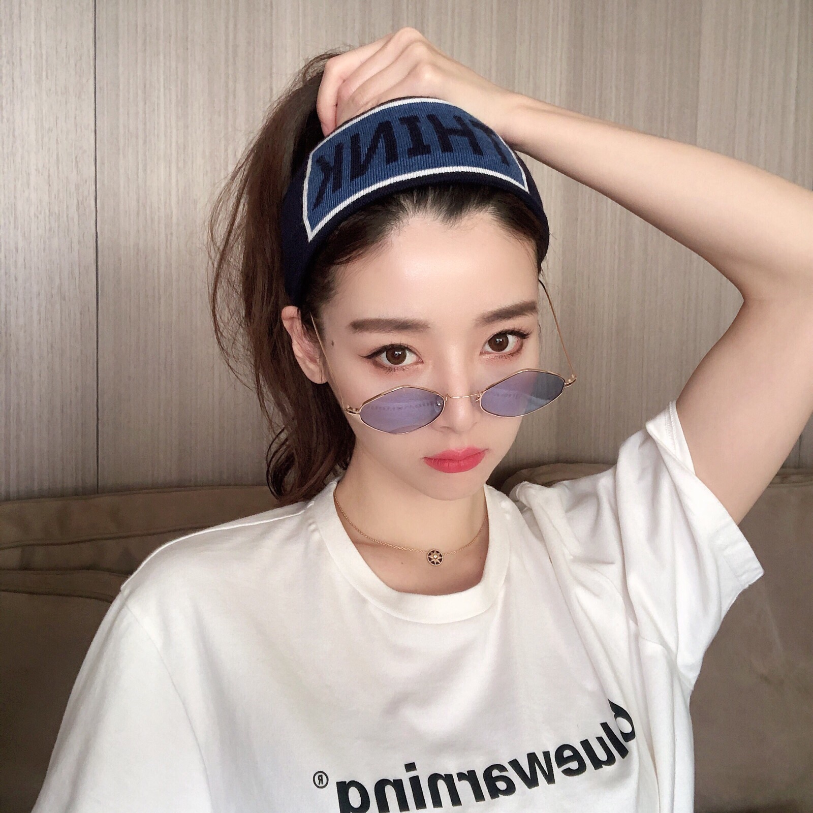 Spring and summer Korea's new Harajuku style sports sweat-absorbing knit wide headband letter headband hairband men and women hip dance tide