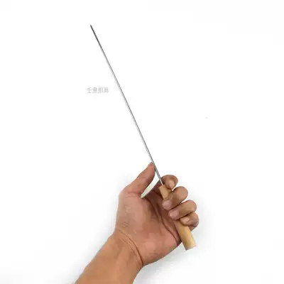 10 wooden handle barbecue signature stainless steel thick barbecue round needle lamb kebab long needle barbecue utensils