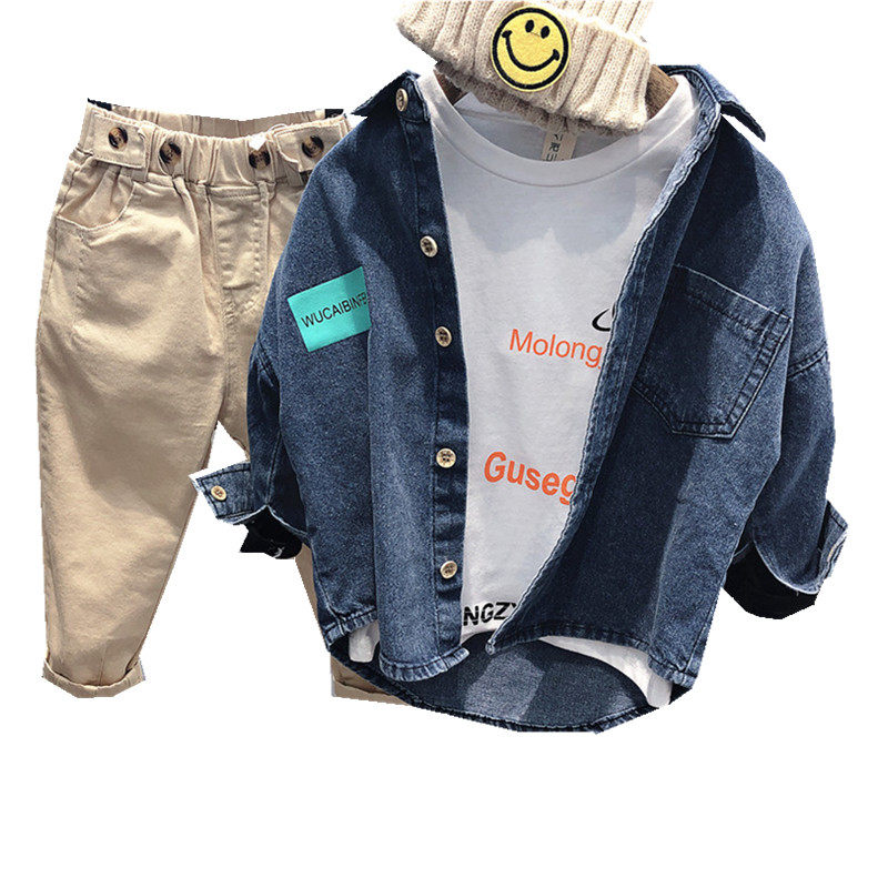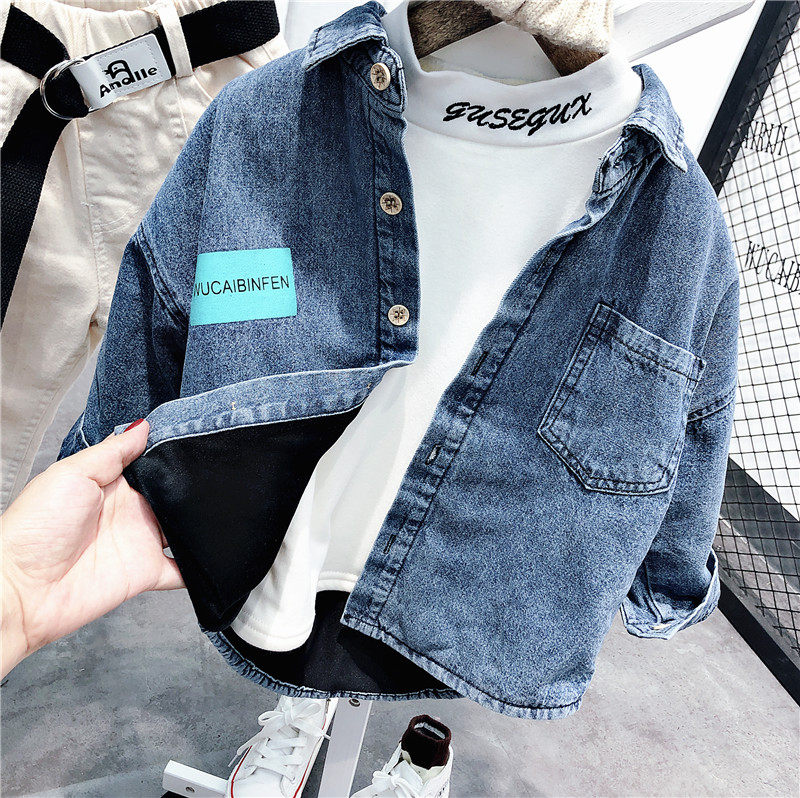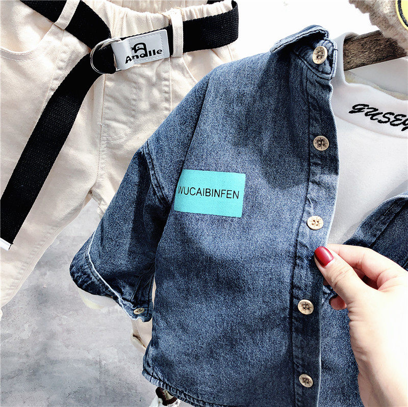 Korean Version Boy Slim Fit Jeans 2021 Spring Clothing New Products Children Personality Shirts Boy Foreign Denim Clothing Tide