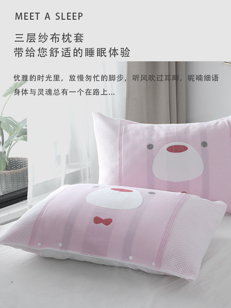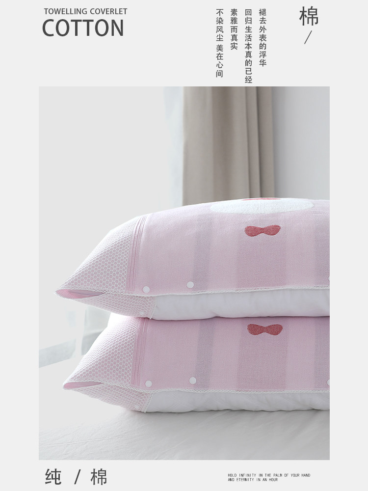 Pillow towel fixed anti-shedding cotton gauze half-bag simple single male and female couples Nordic buckle pillowcase pair
