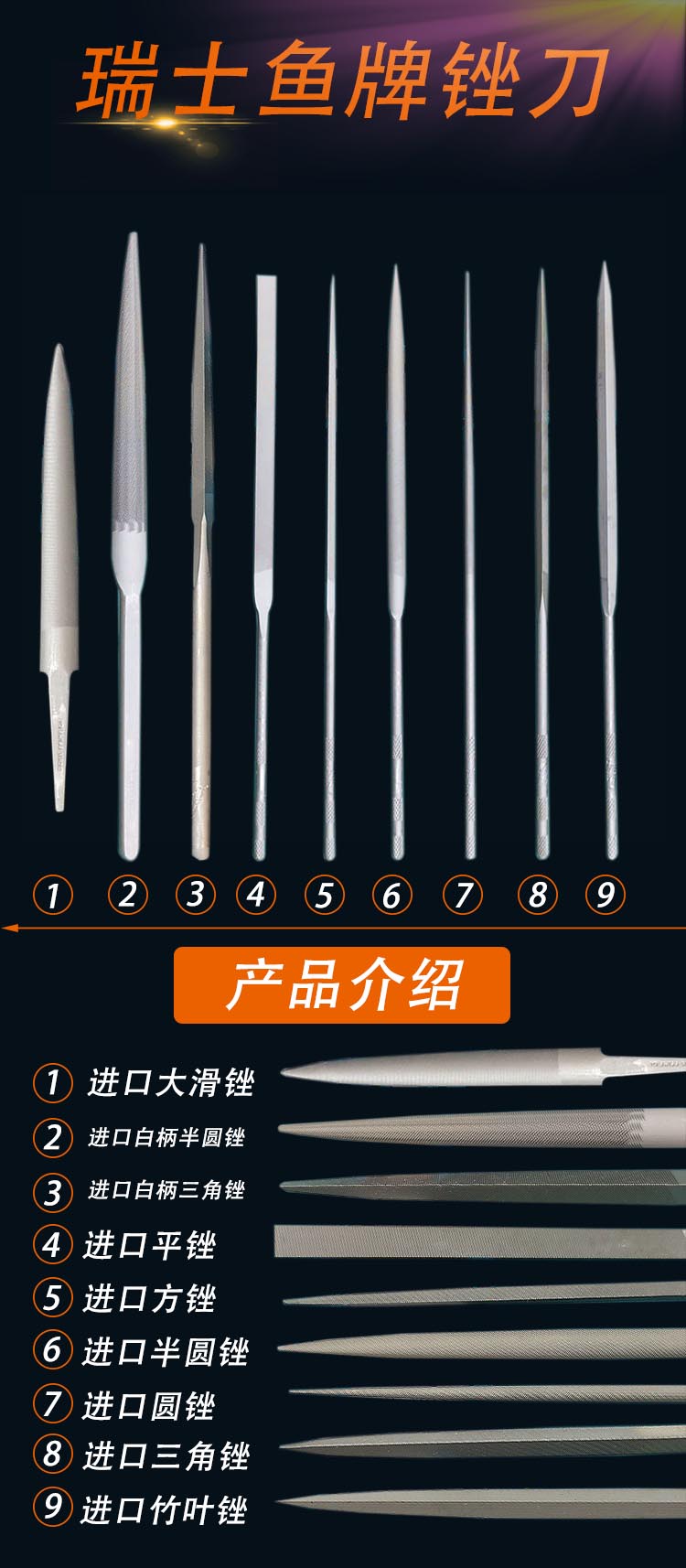 Swiss fish brand file gold and silver jewelry mold shaping file semi-circular file triangle bamboo leaf file flat file large slippery file import