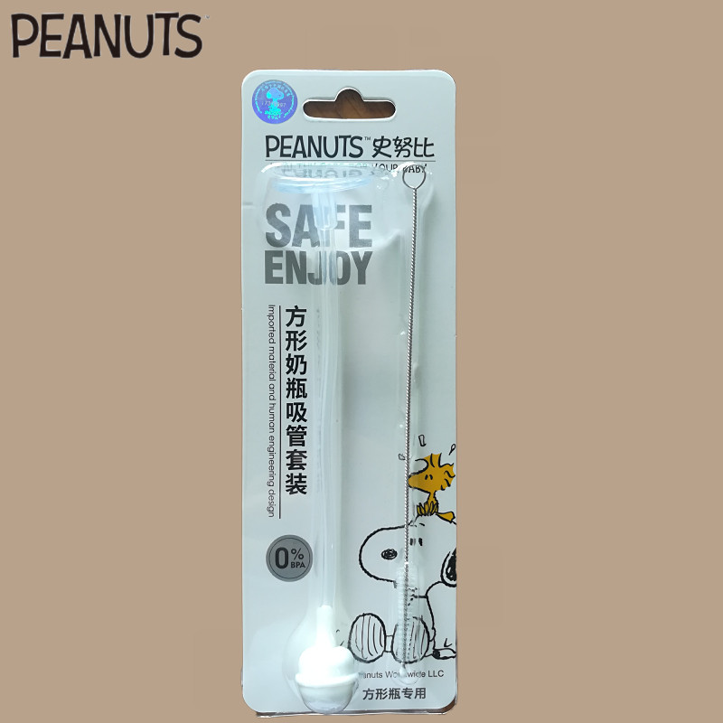 Snoopy Snoopy square bottle straw silicone bottle paste baby gravity ball hose original installed