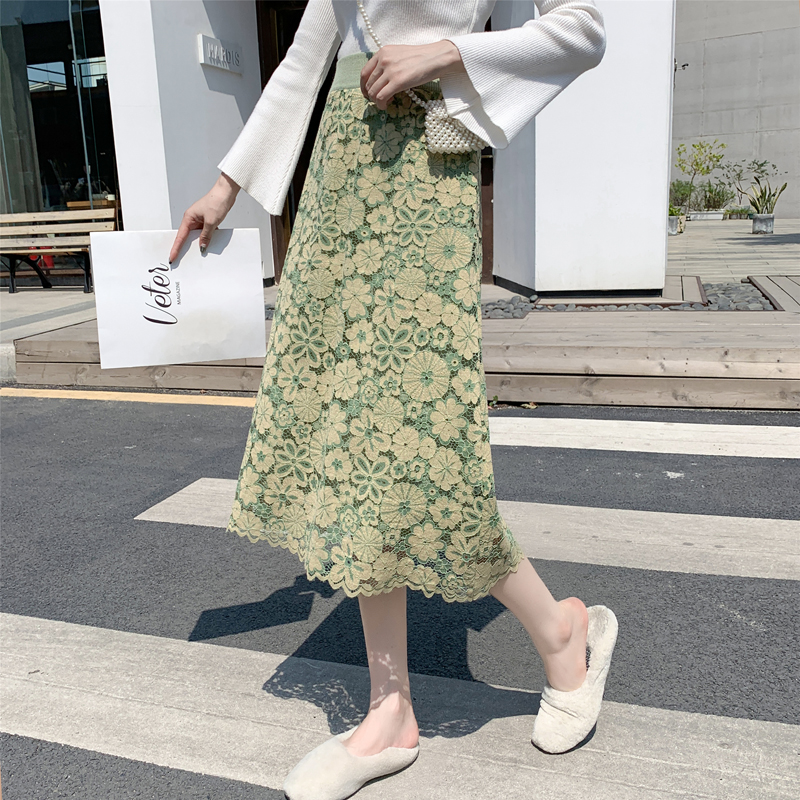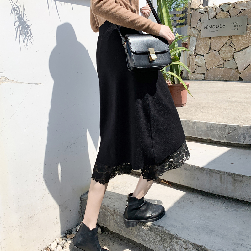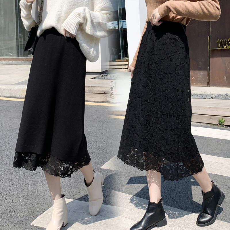 Two-sided lace knitted skirt women's 2022 autumn and winter new high waist mid-length hip skirt one-step woolen skirt