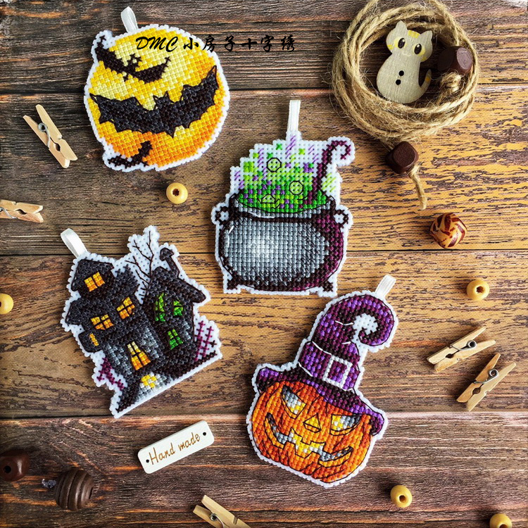 DMC cross stitch refrigerator sticker Halloween DIY Kitchen Living Room Plastic plate Bat Pumpkin Haunted house