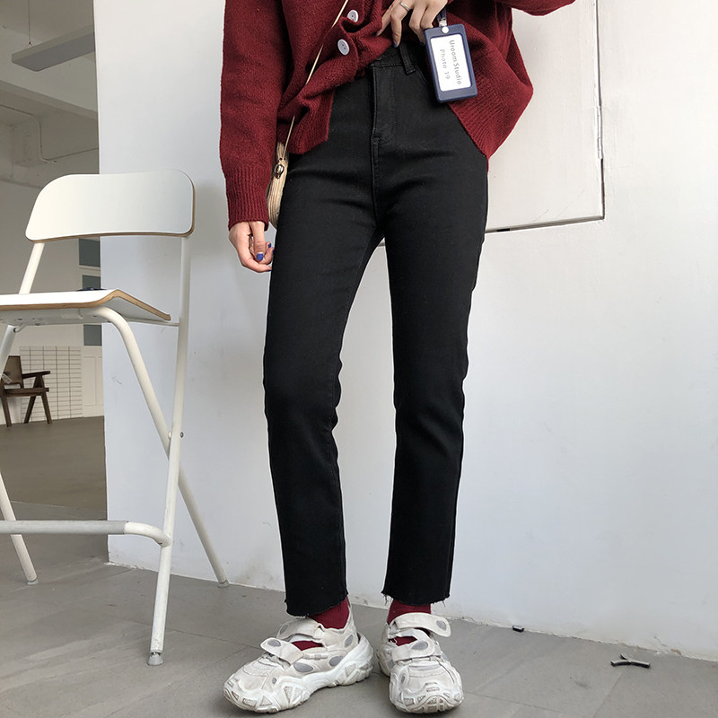 Flower field window Y431 velvet jeans women's high waist wear wild new straight thin slim cigarette tube pants