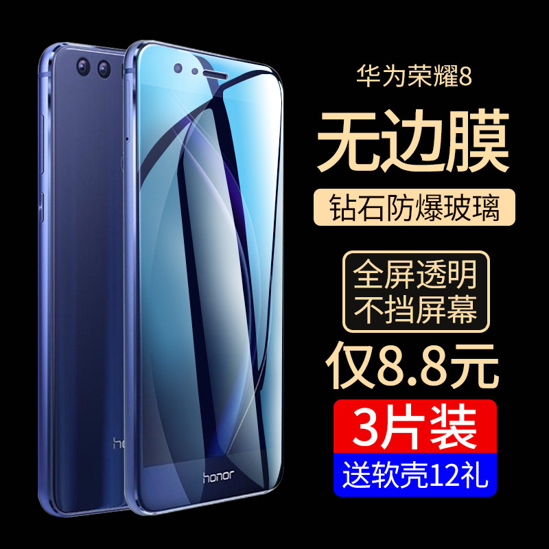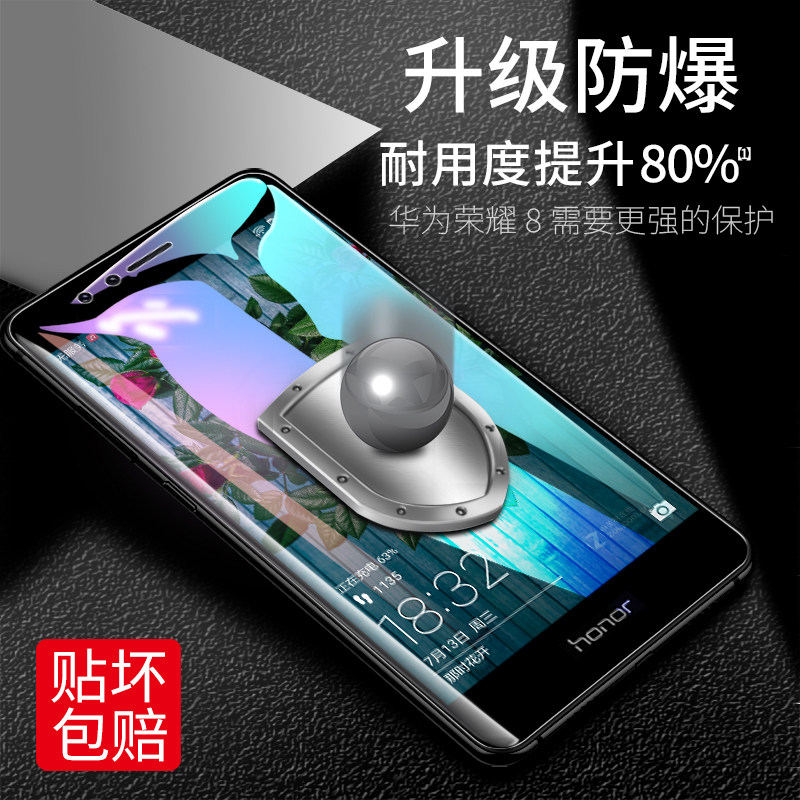 Huawei Honor 8 Steel Film 8 Youth Edition Honor v8 Full Screen 8lite Full coverage Eight anti-blue honor anti-fall Honor 8 HD Special rigid glass No white side screen Paulophone protective film
