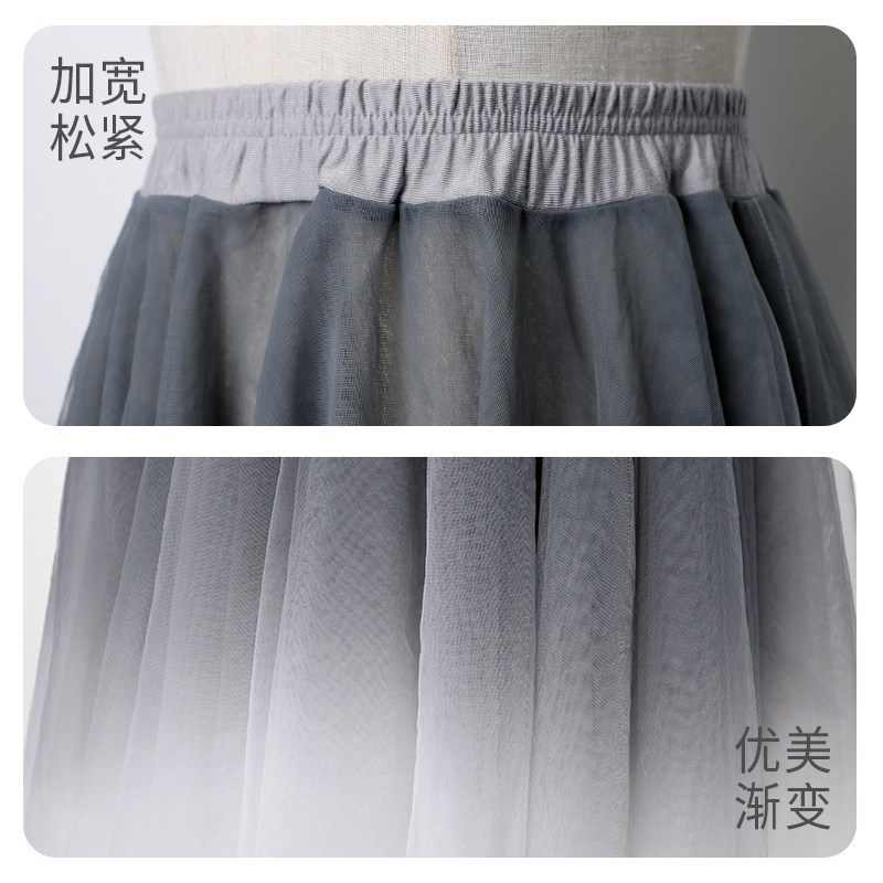 Stretch Mesh Gradual Soft Mesh Long Dress (Set)