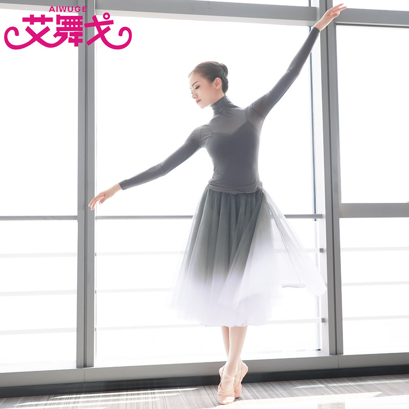 Kung fu dress female dance dress autumn long sleeve body dress set adult tutus teacher gradient colored gauze skirt