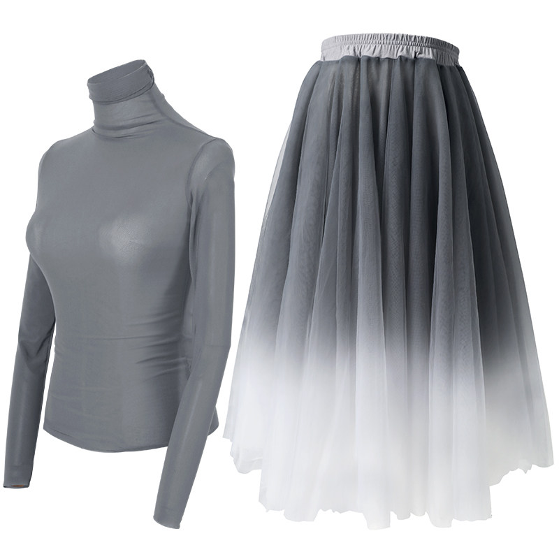 Grey - top black - top wine red - top khaki - top gradient gray - skirt light gray gradient white - skirt gray top + skirt (suit)