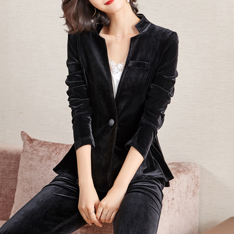 Gold Velvet Small Suit Jacket Woman short section Body Jacket Casual Foreign Style Fashion 2022 New Spring Dress Black