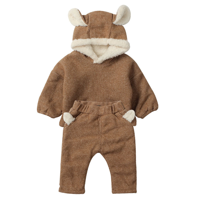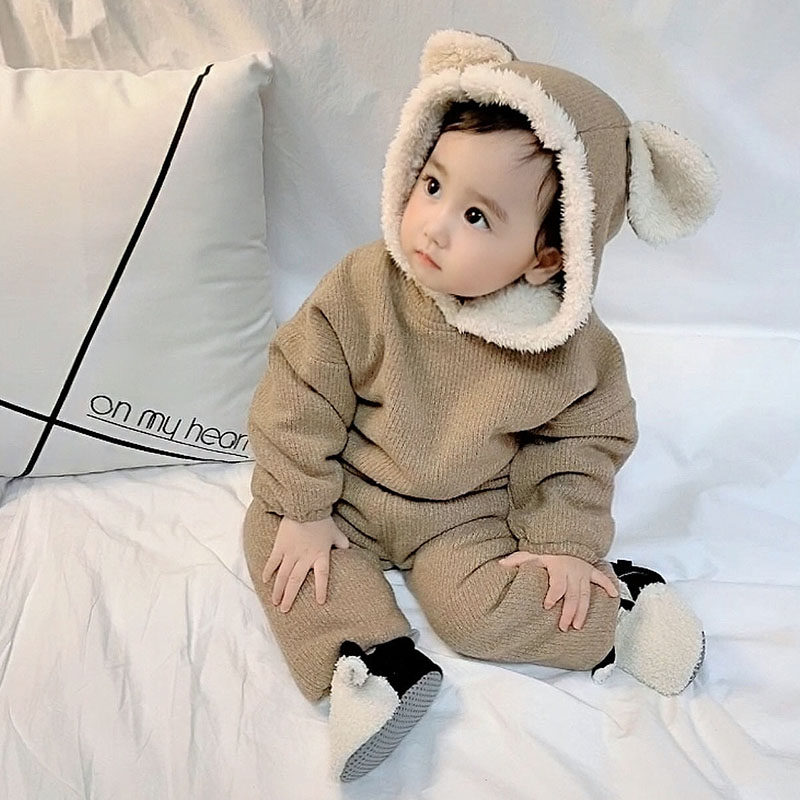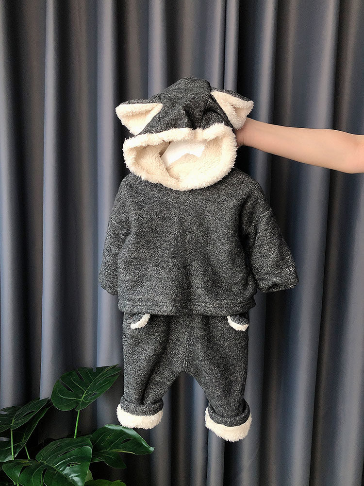 The male baby suit autumn and winter plus suede thickened one year old infant sweatshirt big fart pants two sets of Korean version pure color wave