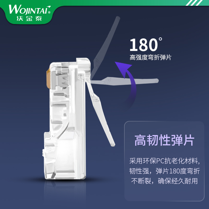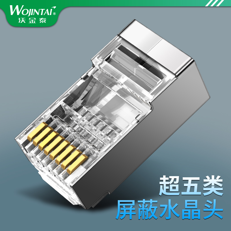 Wojintai thickened pure copper super five network crystal head unshielded network cable connector RJ45 crystal head 8P8C thickened pure copper three-pronged reinforced spring sheet