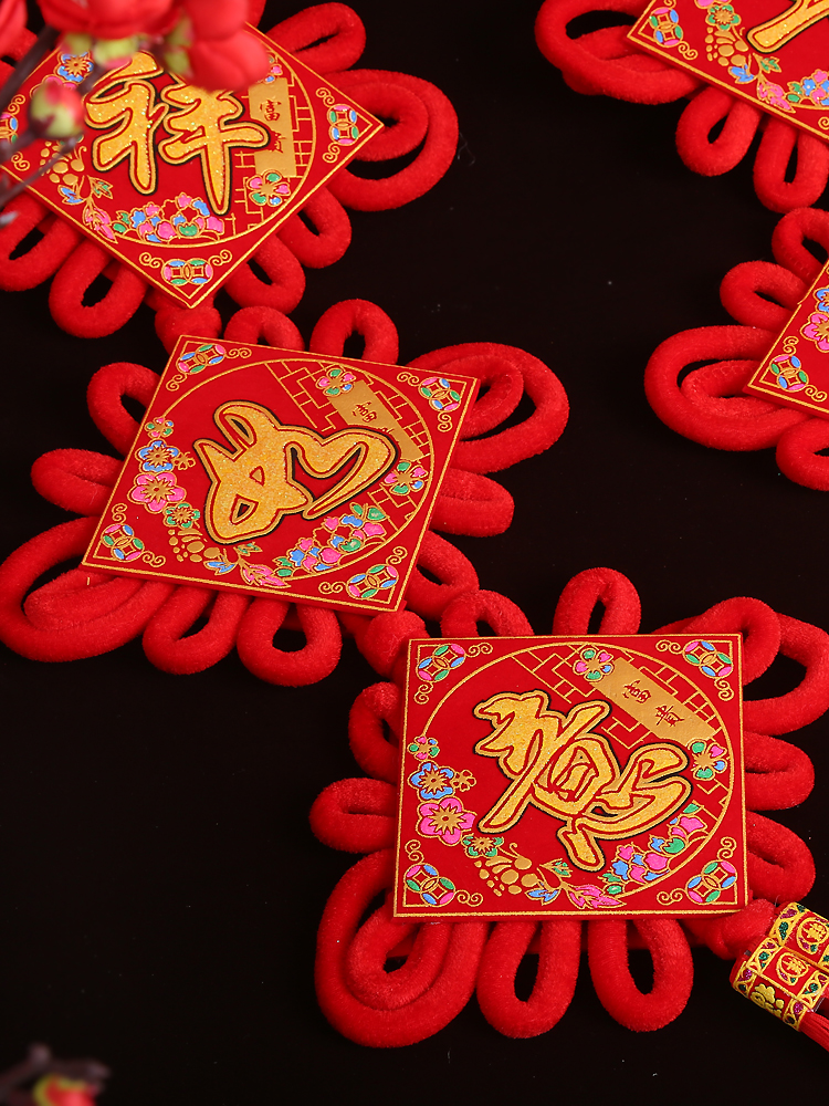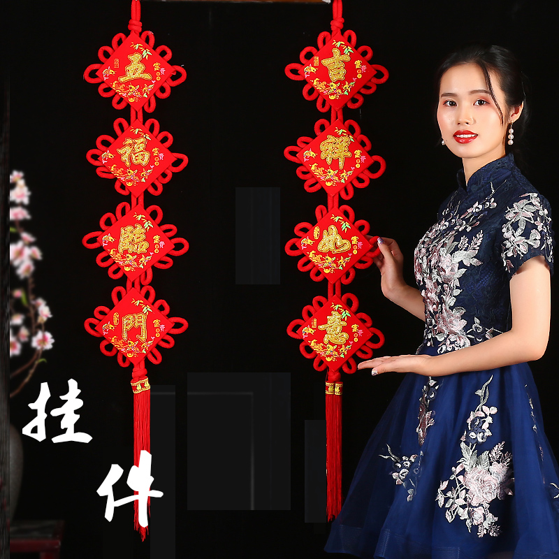 New Year's housewarming flannel Chinese couplet pendant Living room wall hanging room door partition hanging decoration festive double-sided decoration