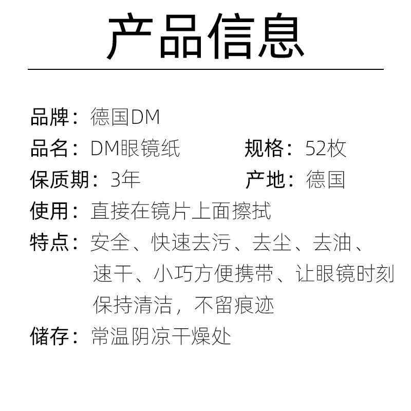 German imports disposable dm wiping glasses paper cleaning paper wet wipes camera phone screen wiping cloth 52 pieces