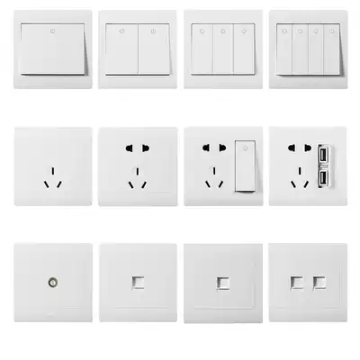 One single-control switch, one-digit double-cut switch, two-digit single-control switch, two-digit double-cut switch, three-digit single-control switch, four-digit single-control switch, four-digit double-cut switch, one-digit doorbell switch 10A, three-pole plug