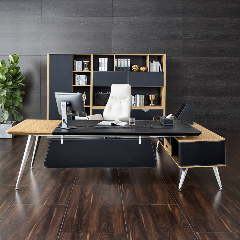 High-end Leather Desk Computer Desk Big Bandae Modern Minima Boss Table Solid Wood President Desk Manager Office Furniture