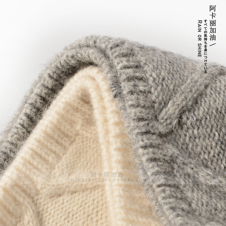 Autumn-winter warm retro-edge wool wool wool line hat brief about 100 lap pure color knit cap men and women cold caps