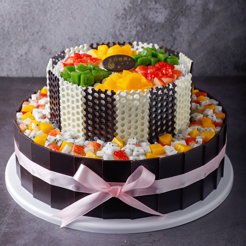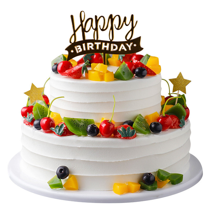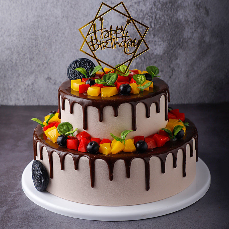 Double - deck European Fruit Cake Model 2023 New Red Birthday Fake Cake Plastic Sample