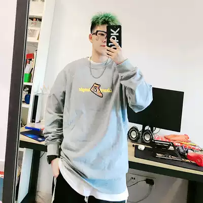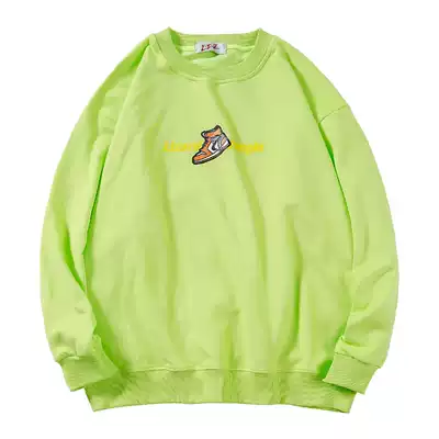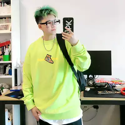 (Clearance sale)National tide cartoon printing round neck thick cotton T men and women tide brand Hong Kong style fluorescent green long sleeve top