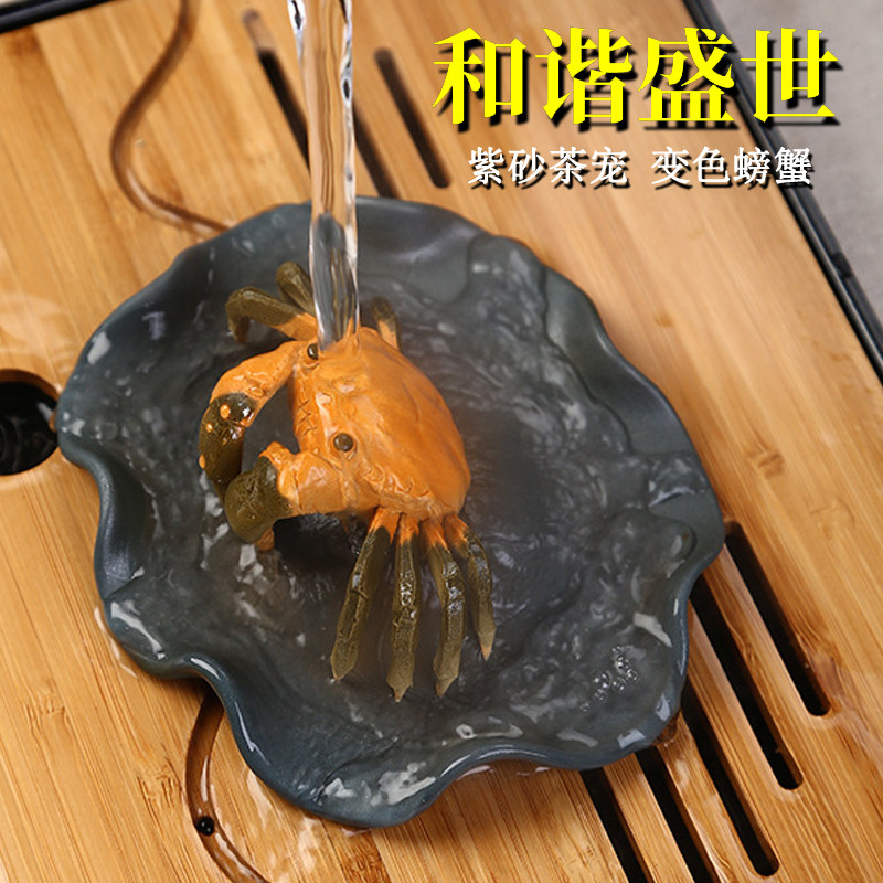 Tea Pet Ornament Color-changing Lotus Leaf Crab Purple Sand Can Raise Simulation Hairy Crab Boutique Small Tea Pet Tea Table Decoration